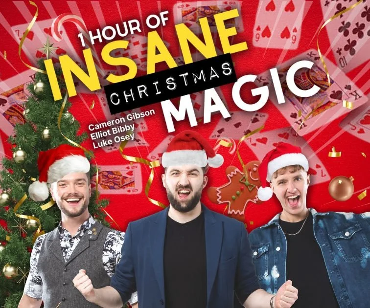 Cameron Gibson, Elliot Bibby, and Luke Osey — “three of the country’s best magicians” (Edinburgh Live) — have had a rollercoaster year: taking Insane Magic to the Adelaide Fringe in Australia, becoming one of the biggest-selling magic shows at the Edinburgh Fringe, and even performing on stage at Glastonbury Festival!