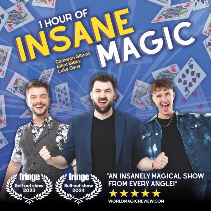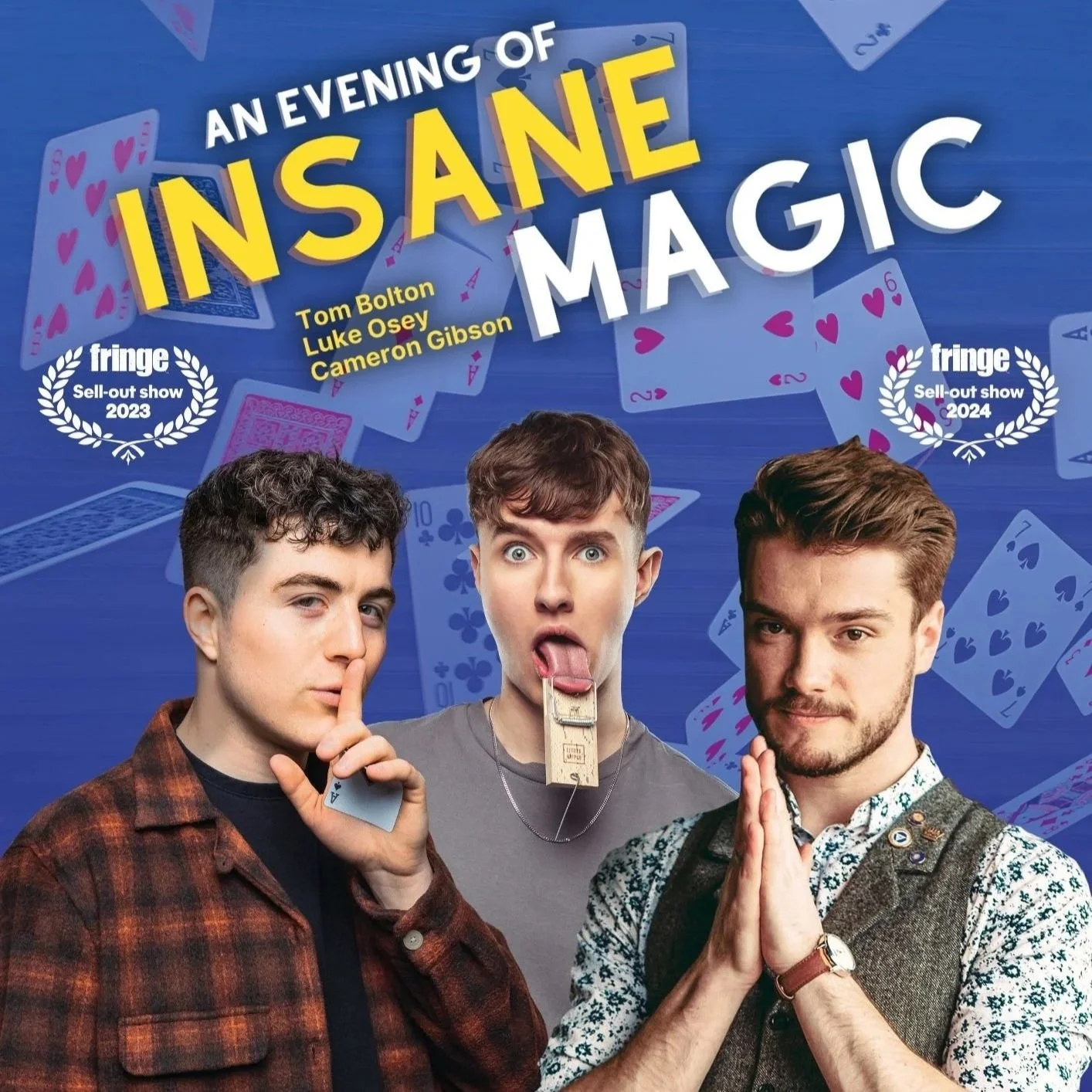 Insane Magic - made up of Cameron Gibson, Elliot Bibby and Luke Osey - built a loyal audience through their Festival Fringe performances.” - Edinburgh Live